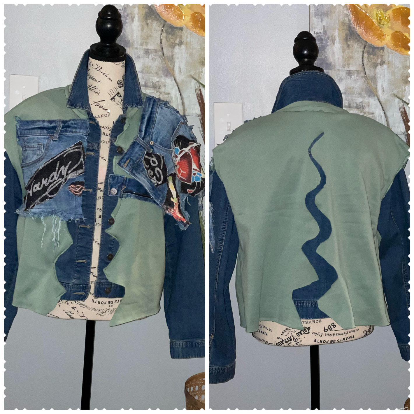 BLACK CROP SWING Jacket with Denim Accents