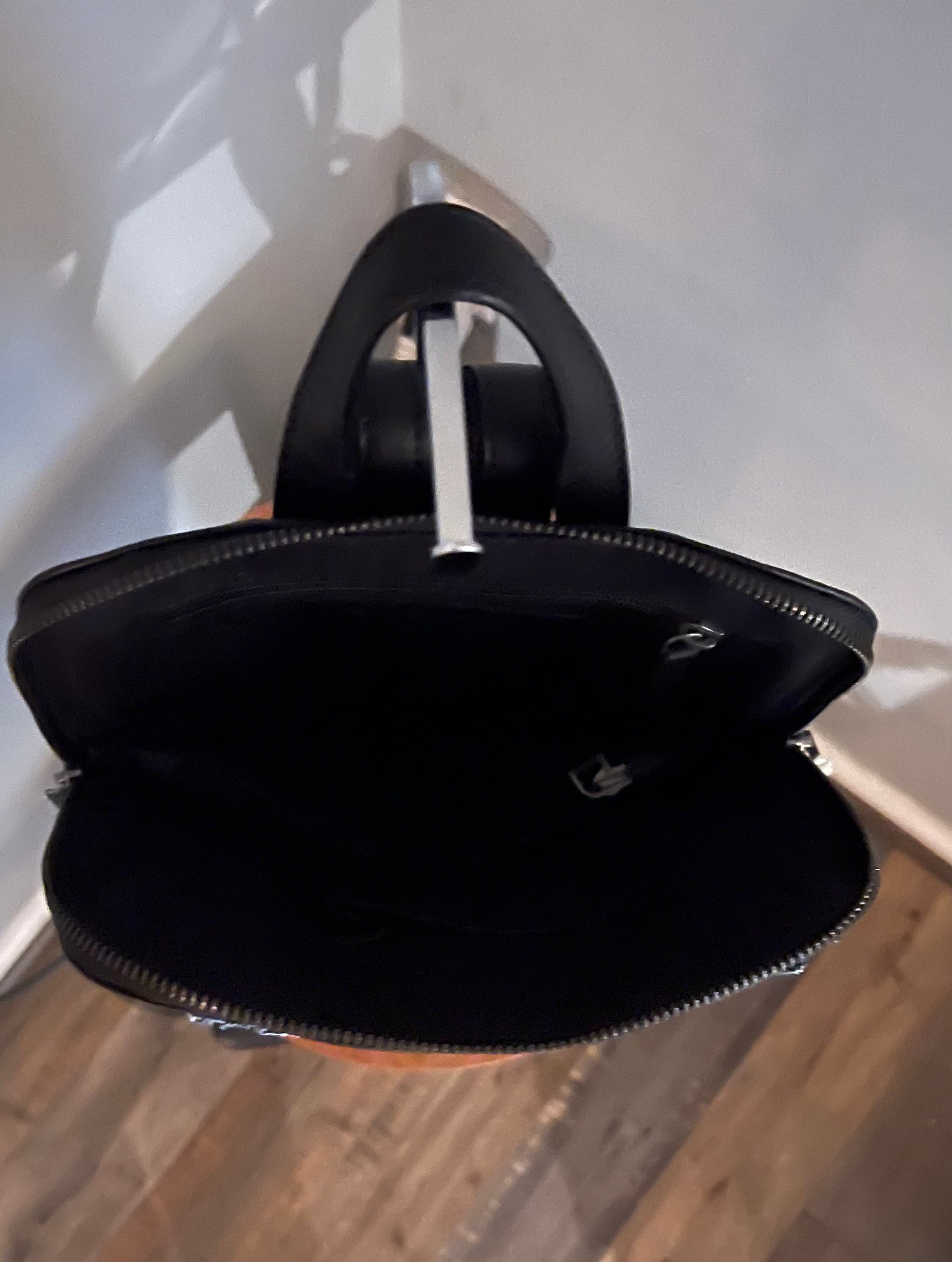 THE DC/NY MEDIUM DENIM BLACK LEATHER BACKPACK